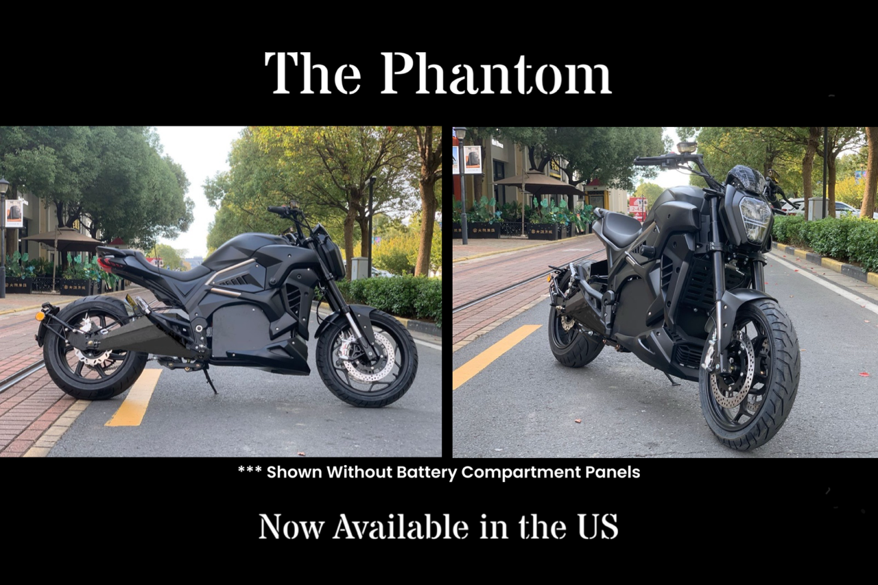 (New) EV-1 Phantom (full size) Motorcycle. Our EXCLUSIVE flagship Model. Hi-Torque, Variable Power Output: 8kw - 25Kw+ Mid Mount Motor 72v 120 ah Lithium Battery